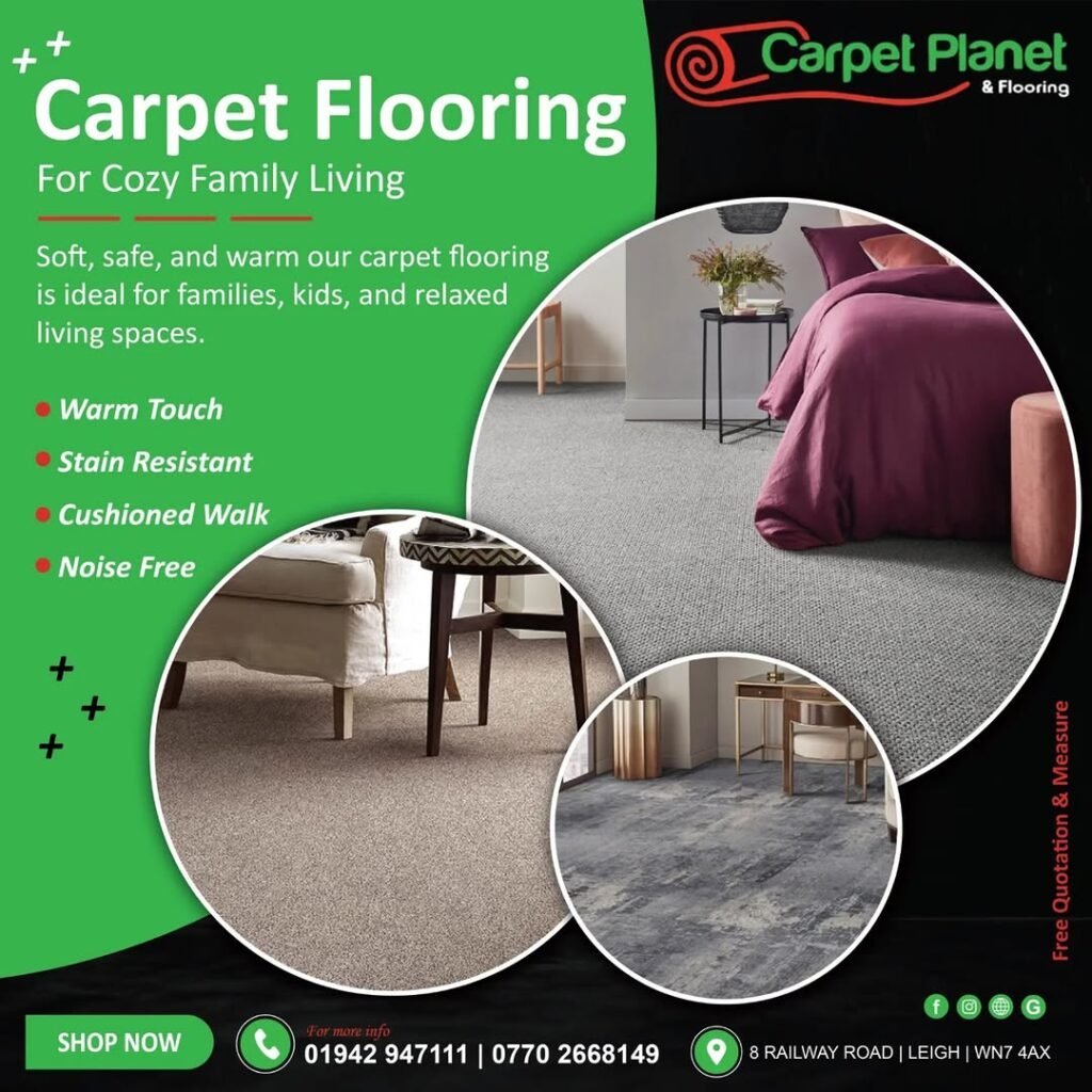 Carpet Planet and Flooring Leigh makes your home look nice and feel comfortable. With many years of experience, we know how to help you choose the best Flooring, Beds, or Blinds for your home.